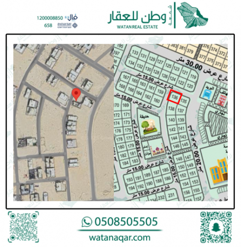 نصف أرض للبيع في الحي الثاني 136 / 2 ج