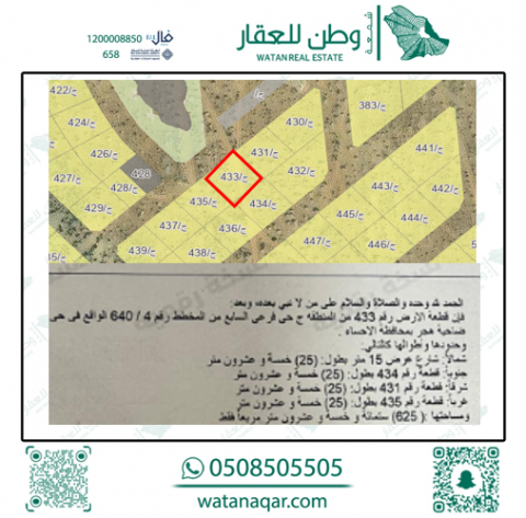 أرض للبيع في الحي السابع 433 ج
