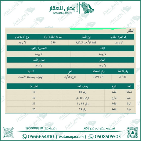 المساحة 250م شارع عرض 15 الإتجاه: جنوب الأطوال: 25x10 السعر: 380,000 ريال ملاحظات ملاحظة: السعر غير شامل الضريبة والسعي رخصة فال 1200008850 - المشاهدات: 114