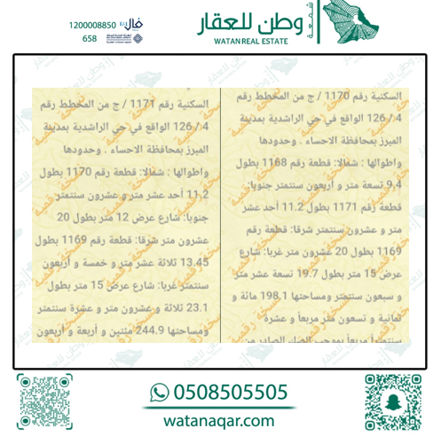 أراضي متجاورات للبيع في دانة الراشدية 1170 / 1171 ج