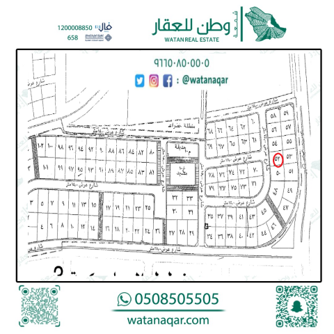 المساحة 382م شارع عرض 15 الإتجاه: غرب الأطوال: 27 × 14 سعر المتر: 1,600 ريال ملاحظات ملاحظة: السعر غير شامل الضريبة والسعي رخصة فال 1200008850 - المشاهدات: 7
