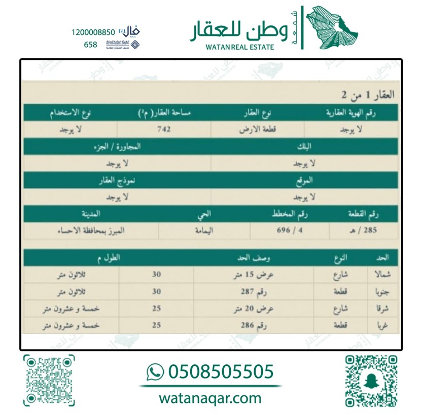 أرض للبيع في اليمامة 286 / 285 هـ