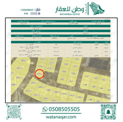 أرض للبيع في الحي التاسع 175 ب
