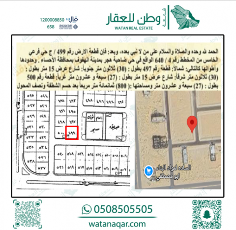 أرض للبيع في الحي الخامس 499 ج