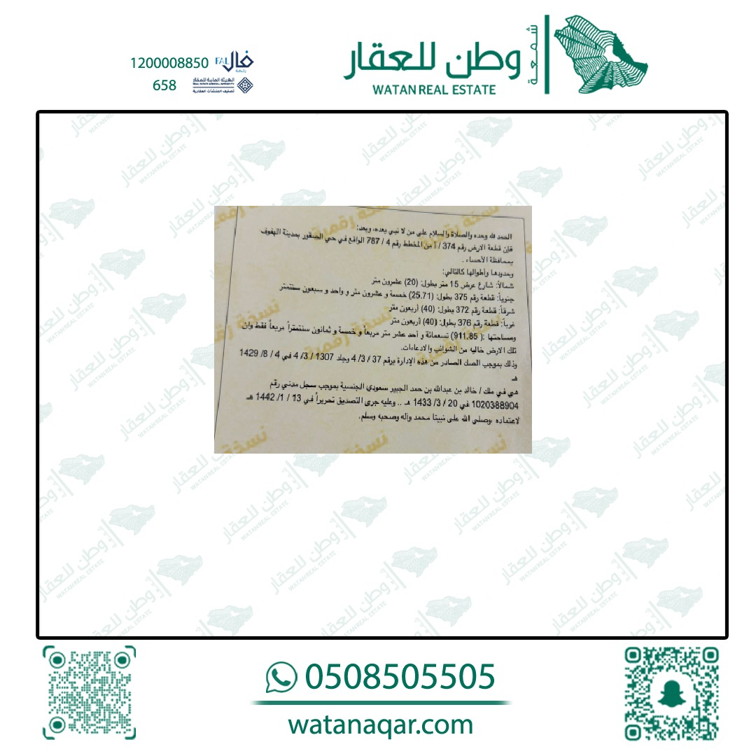 أرض سكنية للبيع في الصقور 374 أ