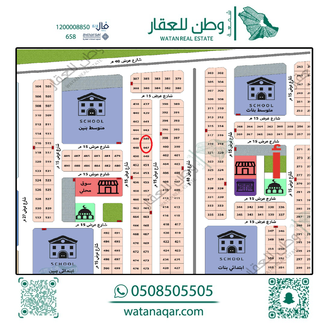 المساحة 512.5م شارع عرض 40 الإتجاه: شرق الأطوال: 25 × 20 ملاحظات ملاحظة: السعر / سوم 450 ألف غير شامل الضريبة والسعي رخصة فال 1200008850 - المشاهدات: 4