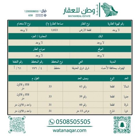 أرض للبيع في شرق شرق الحديقة 61 أ