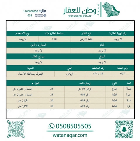 أرض للبيع في الرياض بالأحساء 607 ب